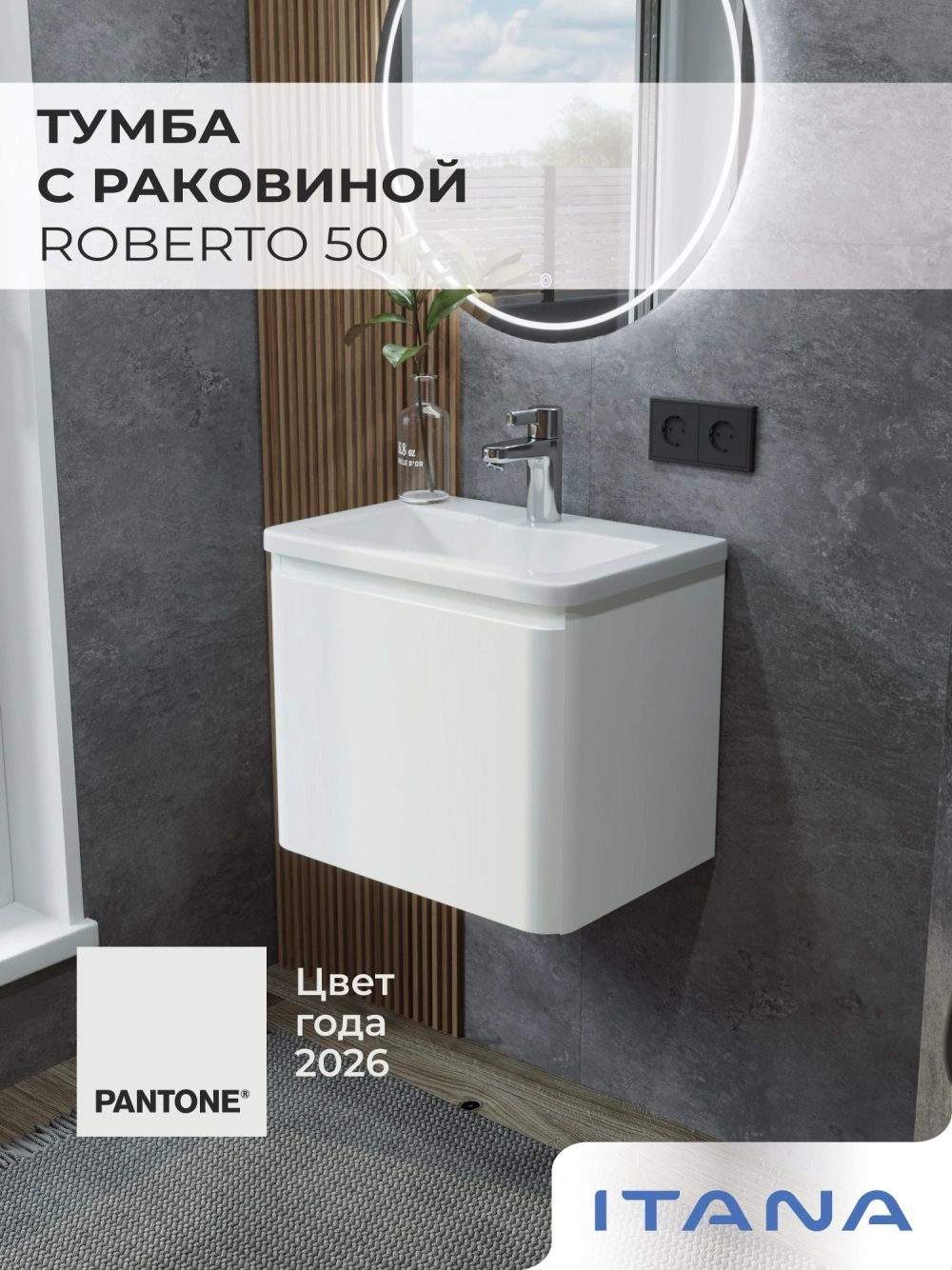 Тумба с раковиной подвесная Итана Roberto 50 с выдвижным ящиком Эмаль Белый глянец