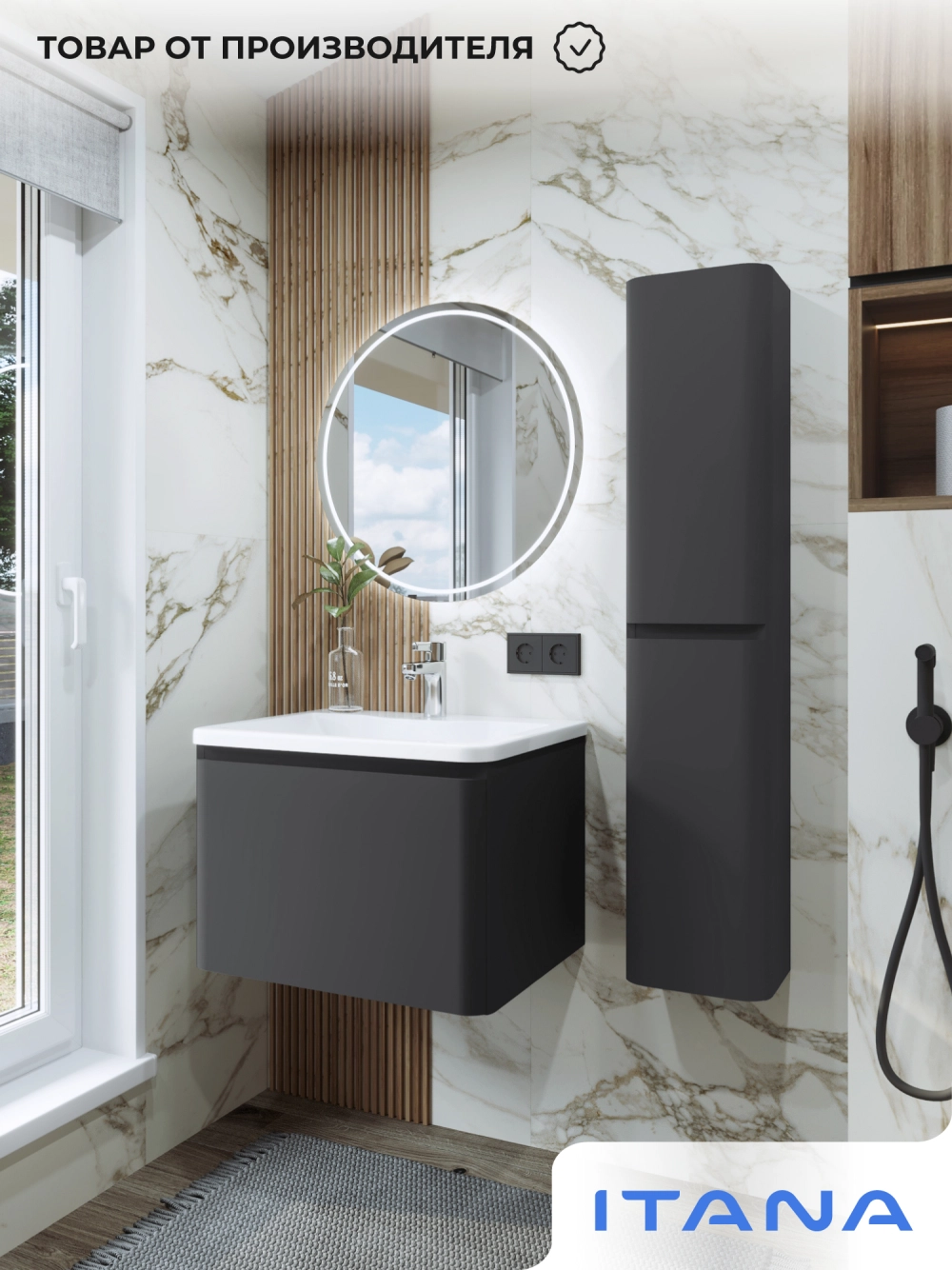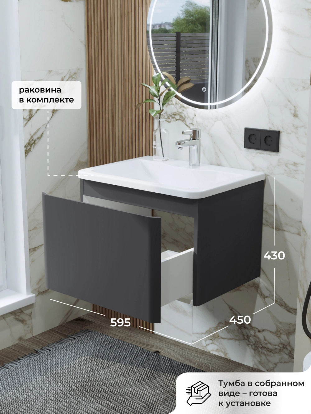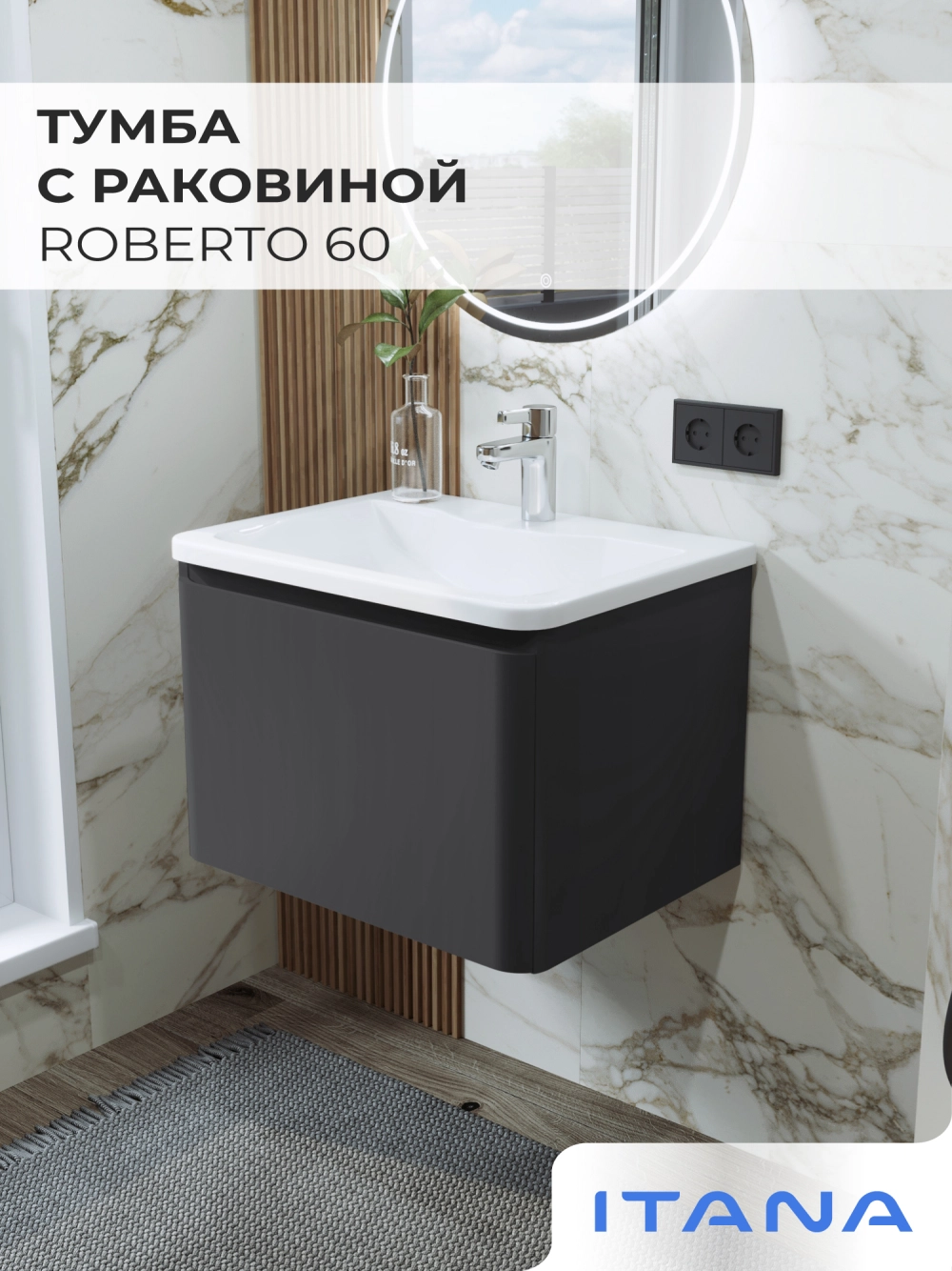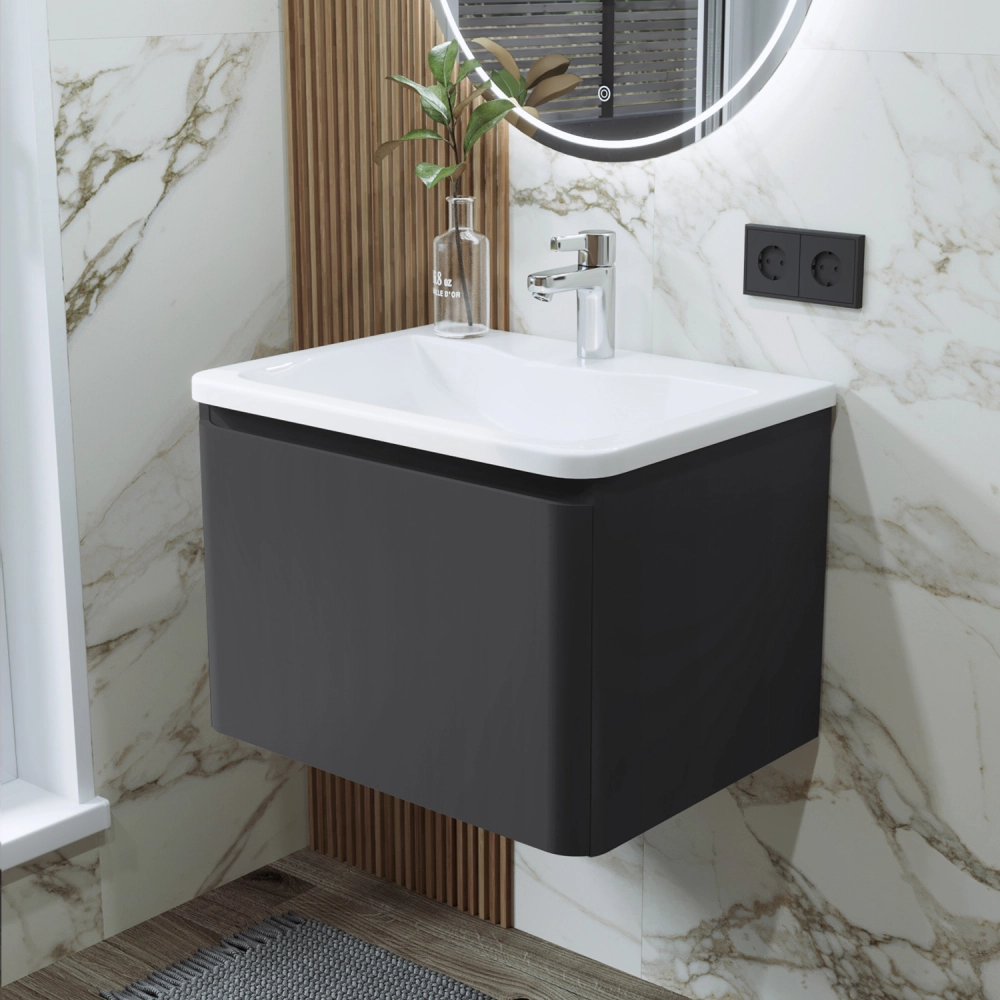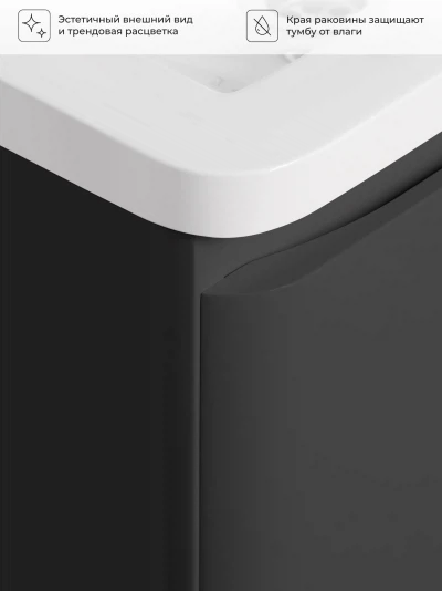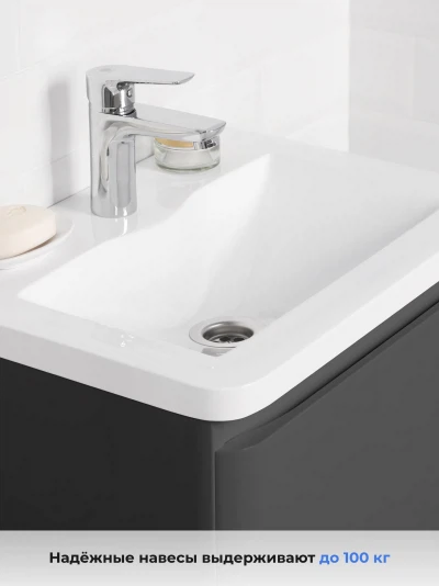 Тумба с раковиной подвесная Итана Roberto 60 с выдвижным ящиком Графит