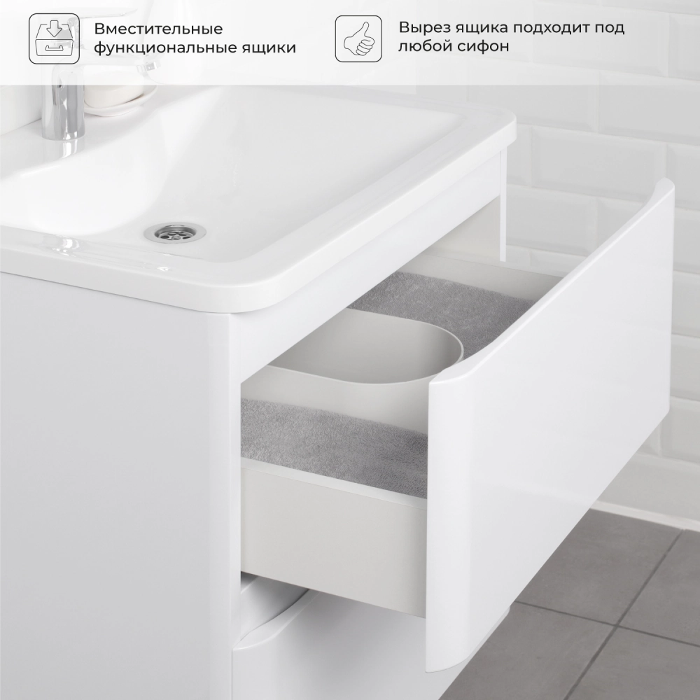 Тумба с раковиной подвесная Итана Roberto 60 с выдвижными ящиками Белый Глянец