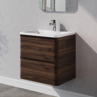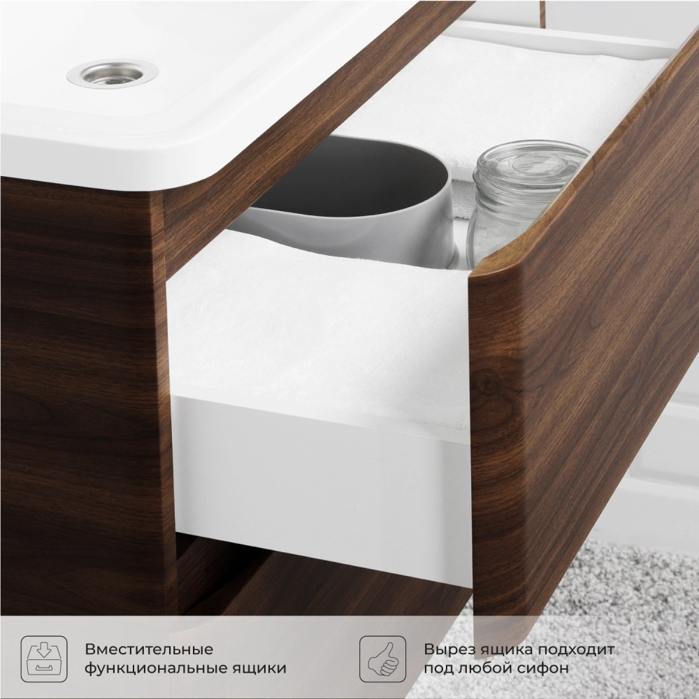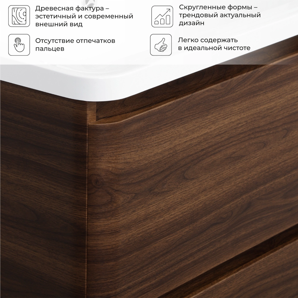 Тумба с раковиной подвесная Итана Roberto 60 с выдвижными ящиками Орех Пекан шоколад стронг