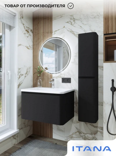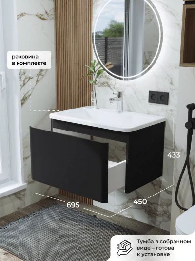 Тумба с раковиной подвесная Итана Roberto 70 с выдвижным ящиком Черный софт