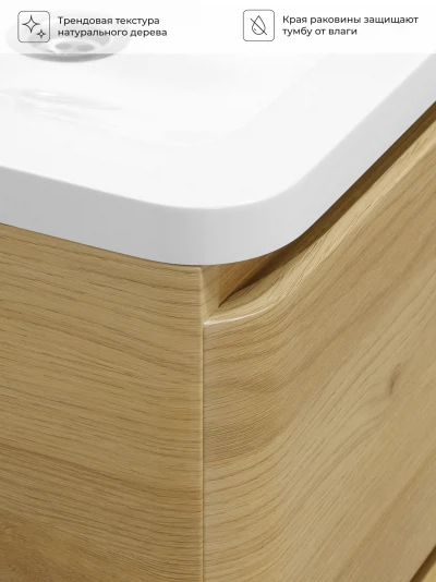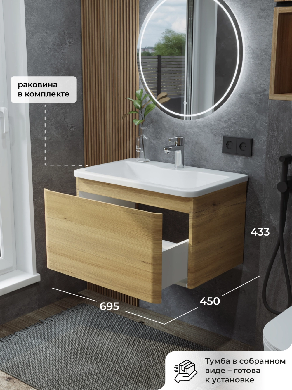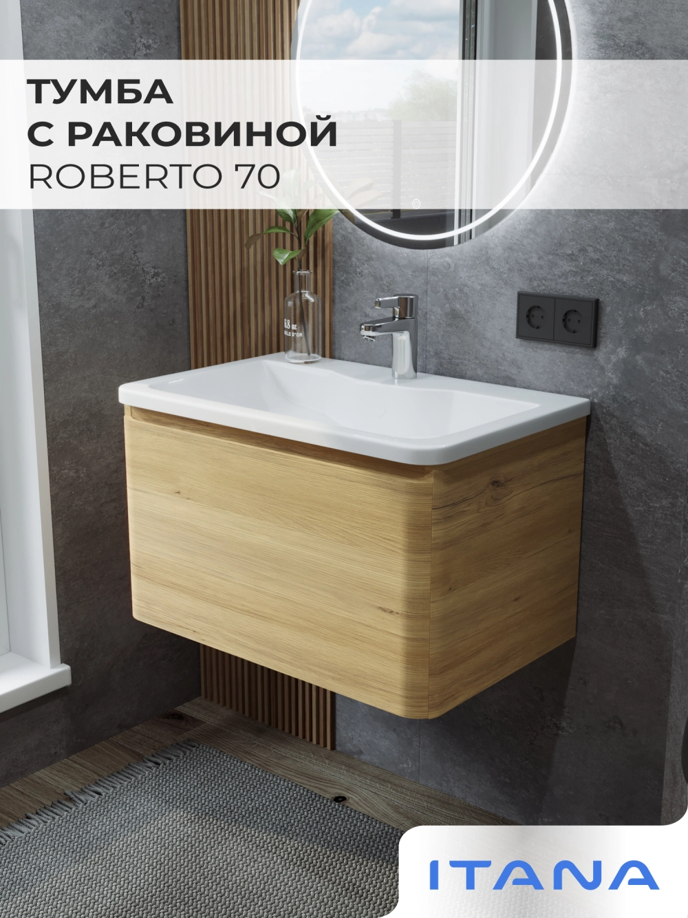 Тумба с раковиной подвесная Итана Roberto 70 с выдвижным ящиком Дуб Мавелла Голд