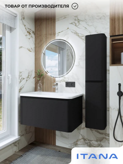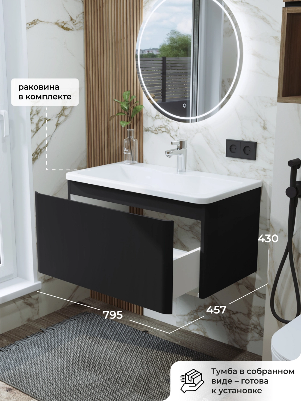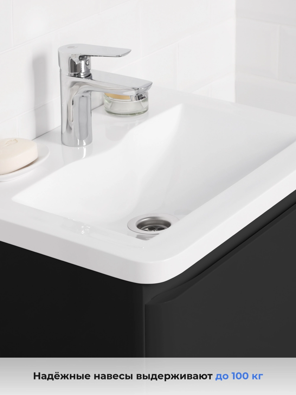 Тумба с раковиной подвесная Итана Roberto 80 с выдвижным ящиком Черный софт