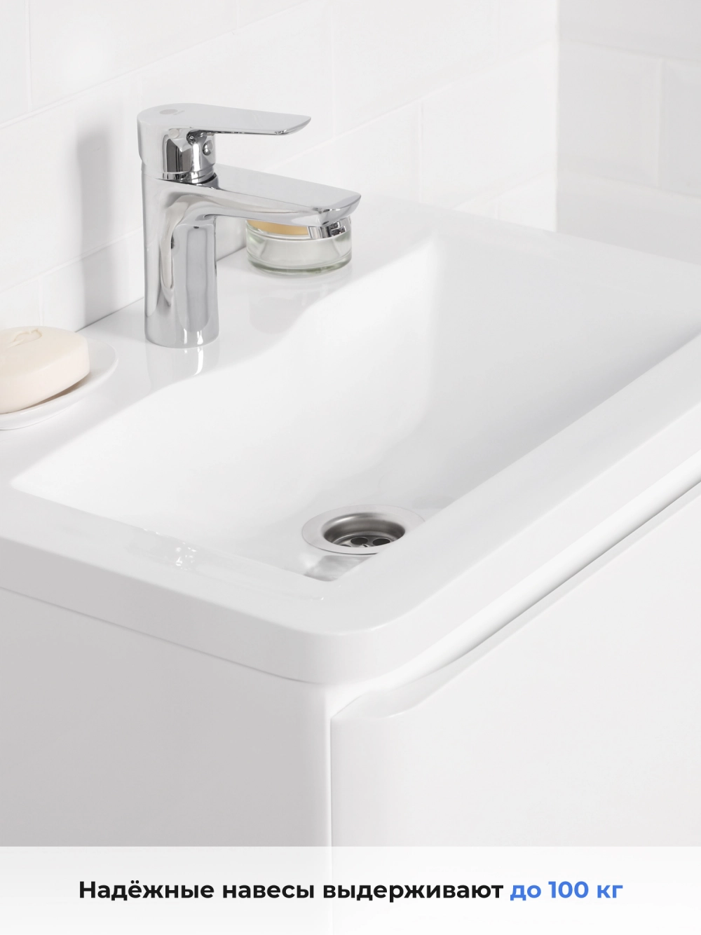 Тумба с раковиной подвесная Итана Roberto 80 с выдвижным ящиком Эмаль Белый глянец