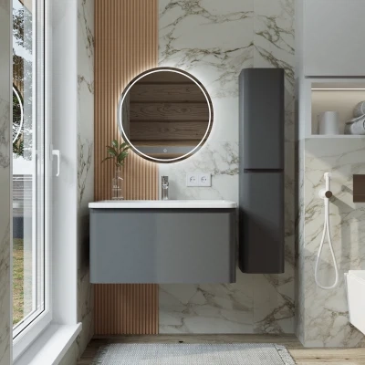 Тумба с раковиной подвесная Итана Roberto 80 с выдвижным ящиком Графит