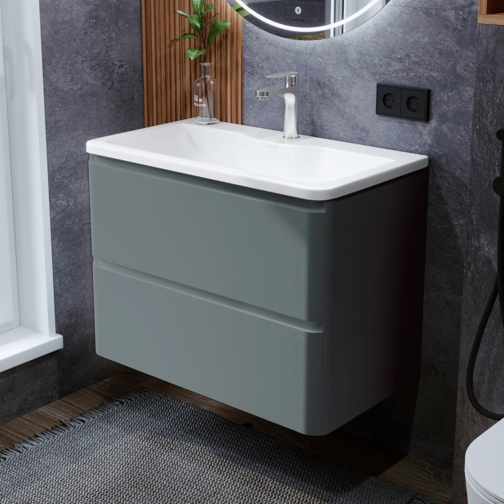 Тумба с раковиной подвесная Итана Roberto 80 с выдвижными ящиками Ral 7012