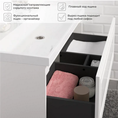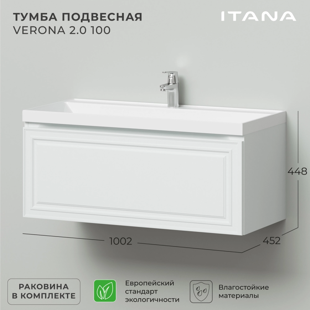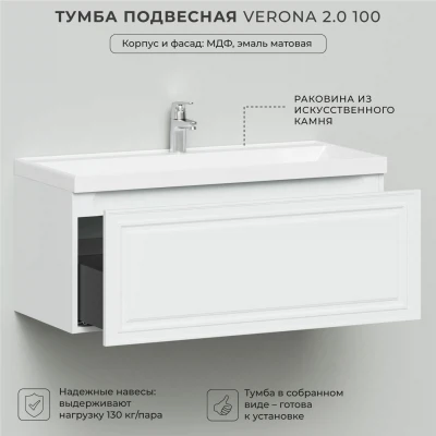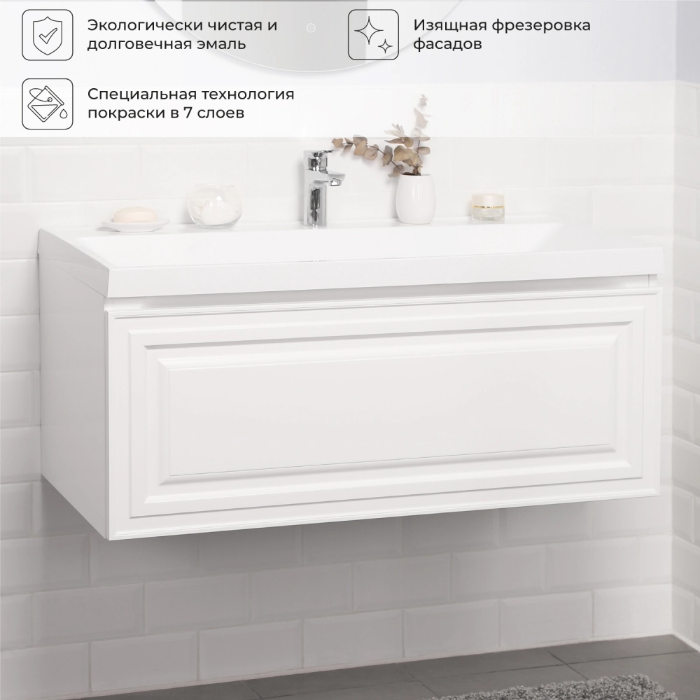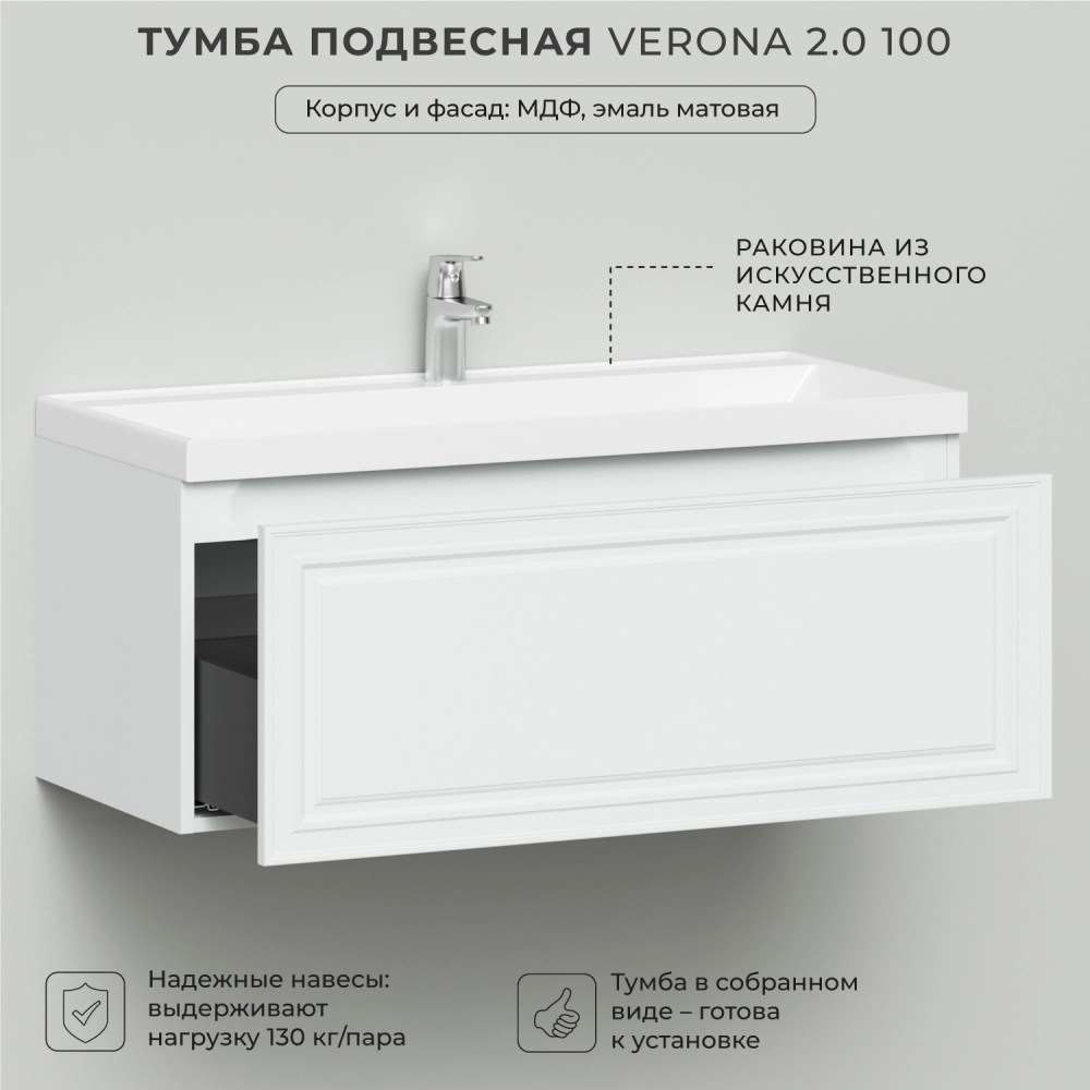 Тумба с раковиной подвесная Итана Verona 2.0 100 с выдвижным ящиком Эмаль Белый матовый