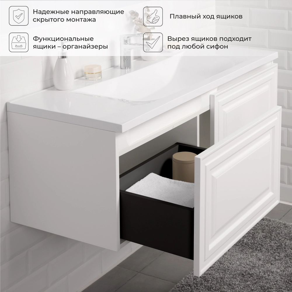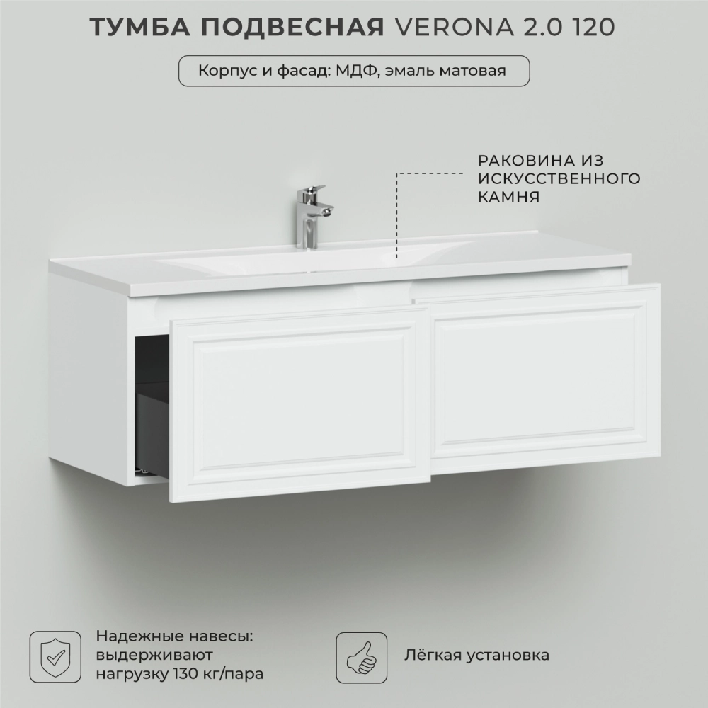 Тумба с раковиной подвесная Итана Verona 2.0 120 с выдвижными ящиками Эмаль Белый матовый