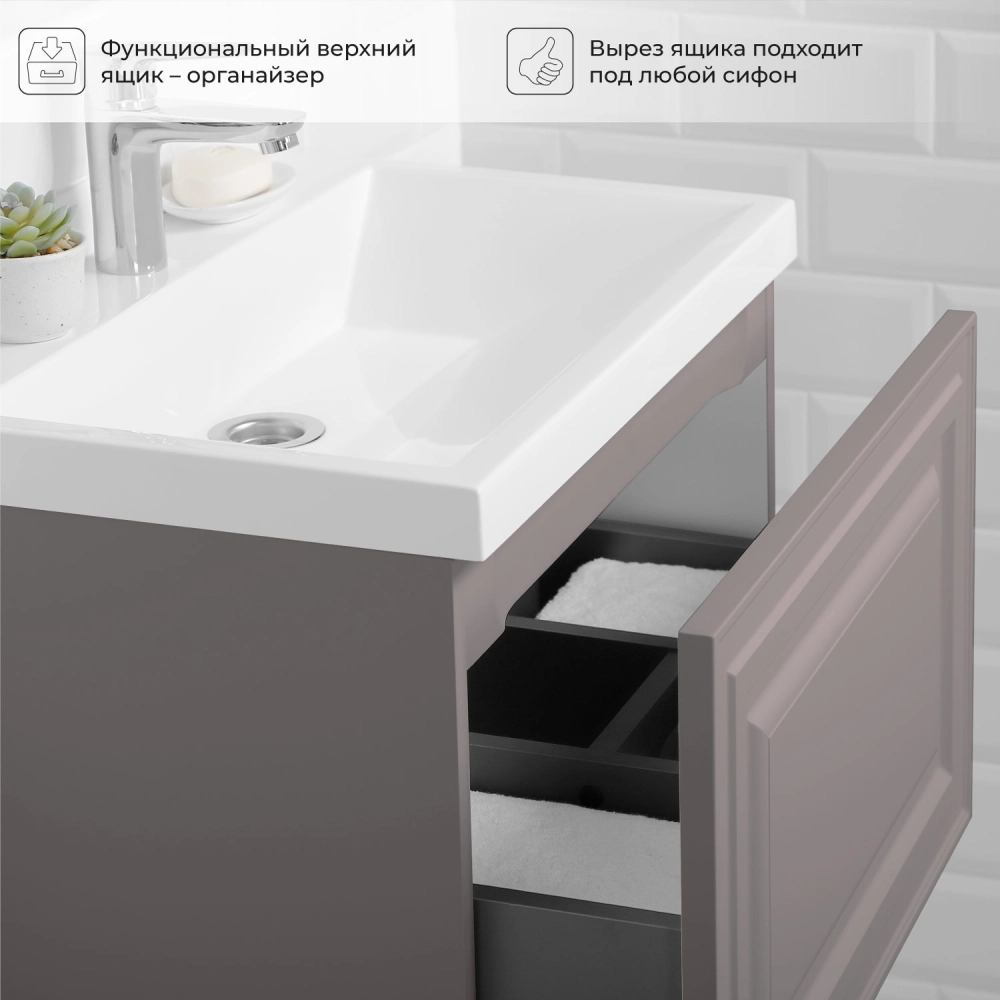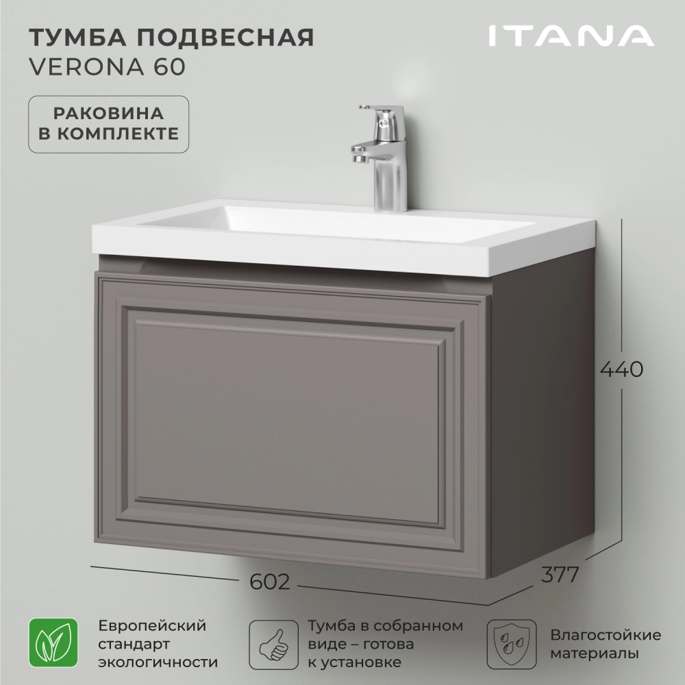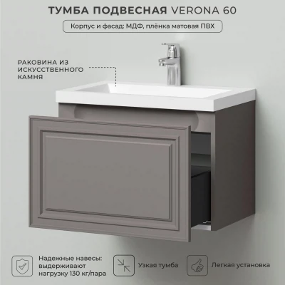 Тумба с раковиной подвесная Итана Verona 60 с выдвижным ящиком Амаретти