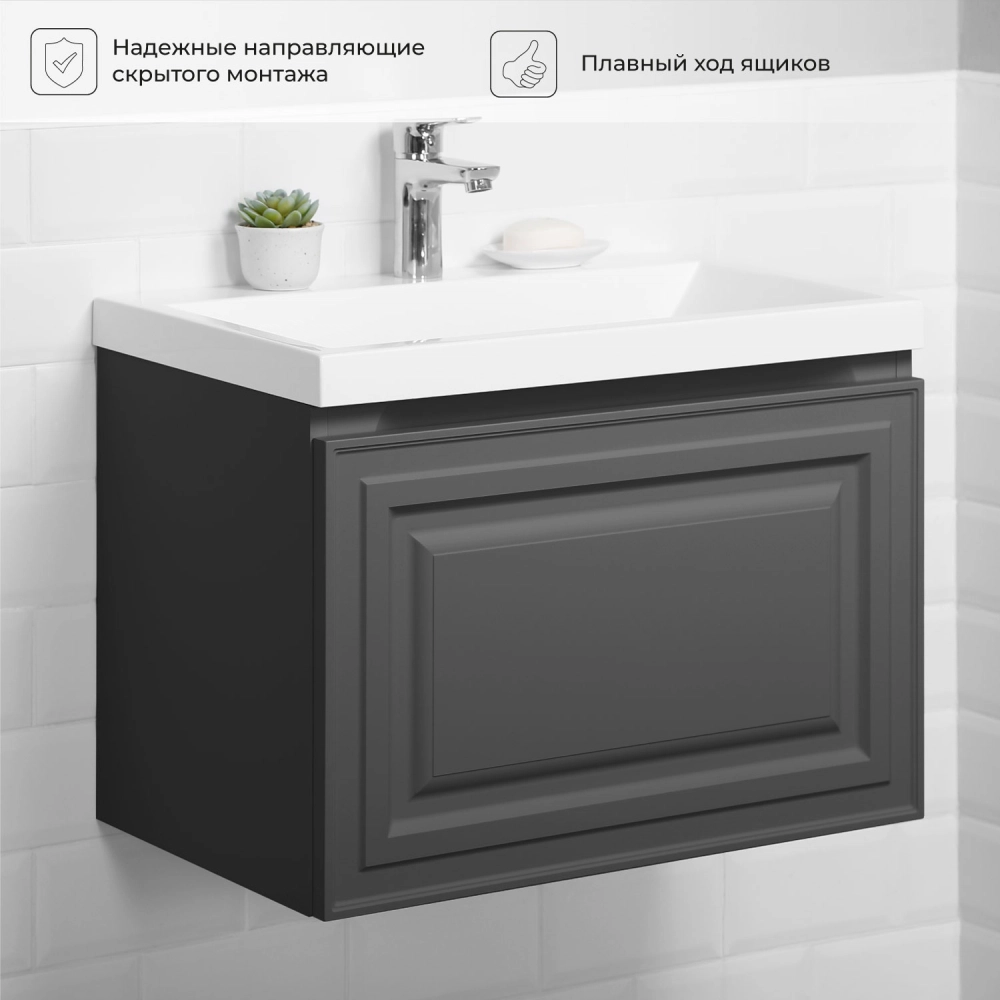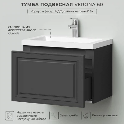 Тумба с раковиной подвесная Итана Verona 60 с выдвижным ящиком Графит