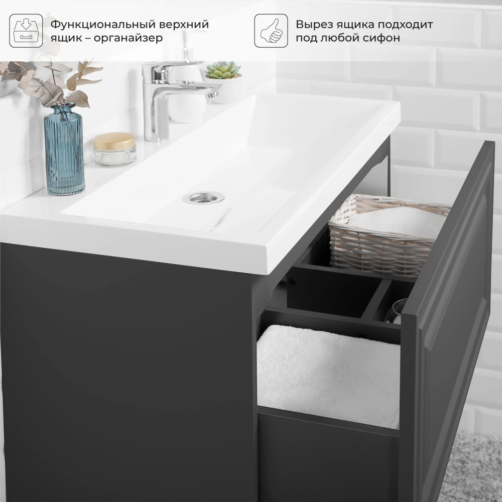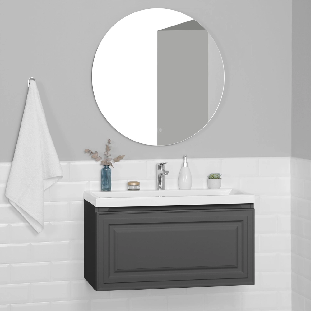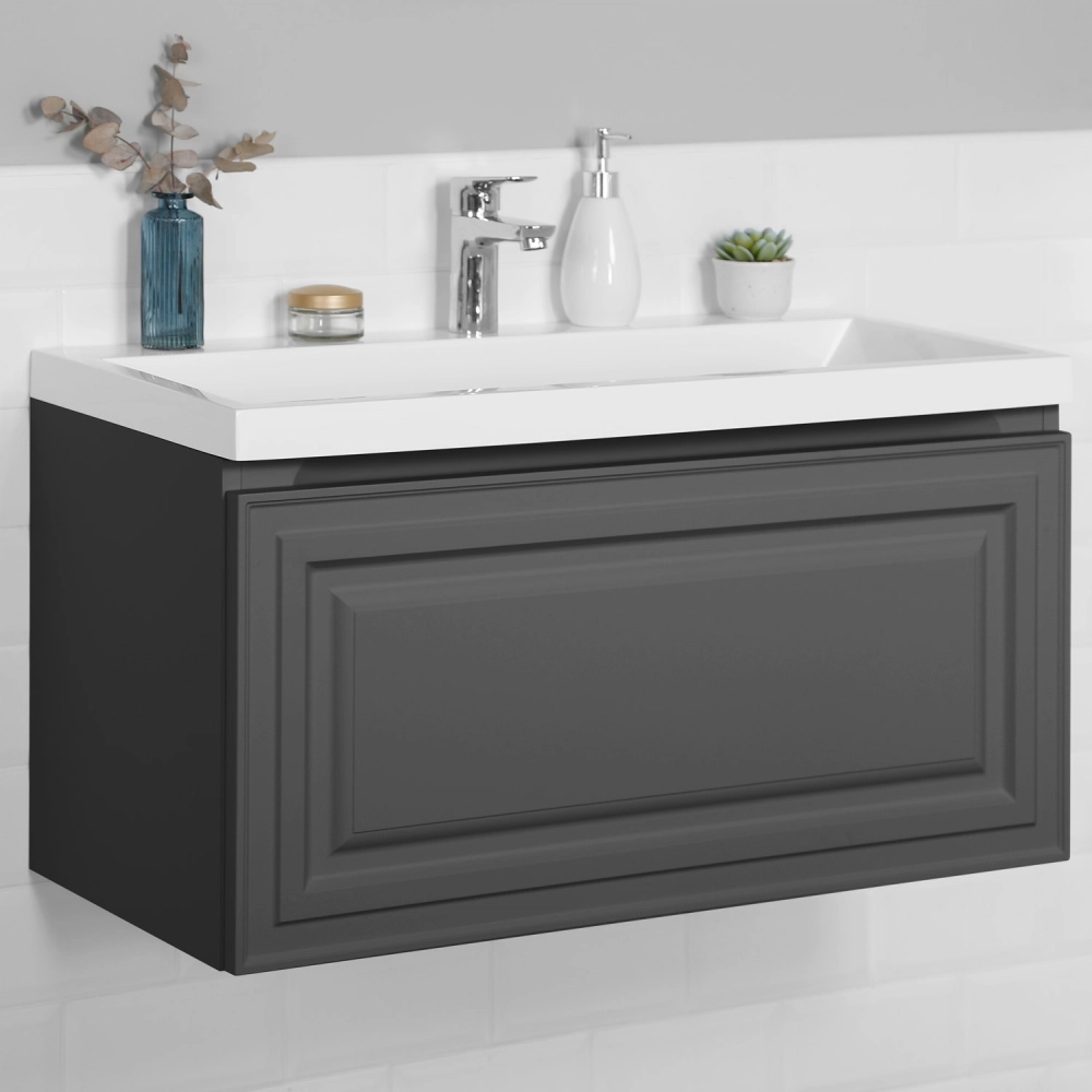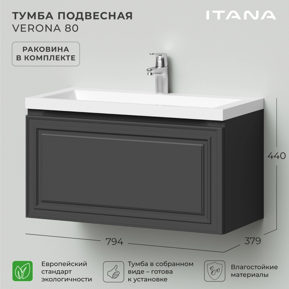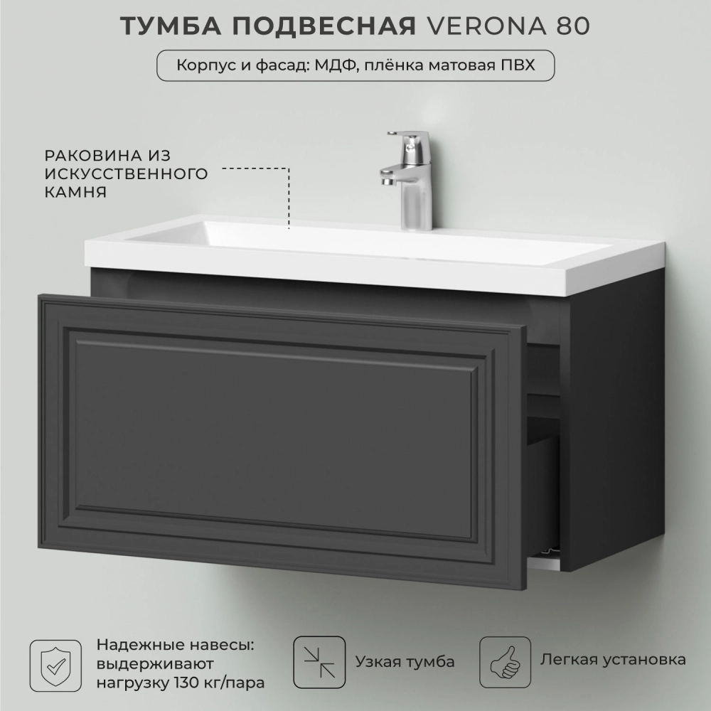 Тумба с раковиной подвесная Итана Verona 80 с выдвижным ящиком Графит