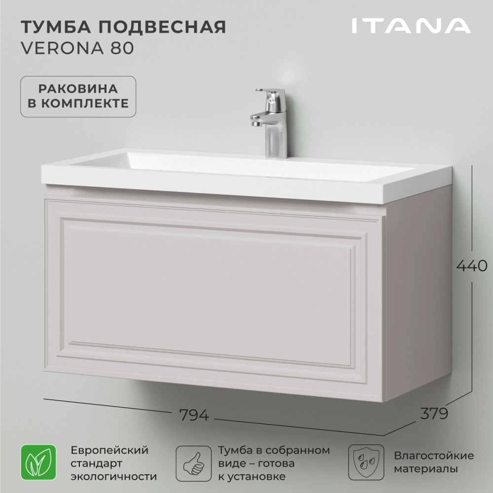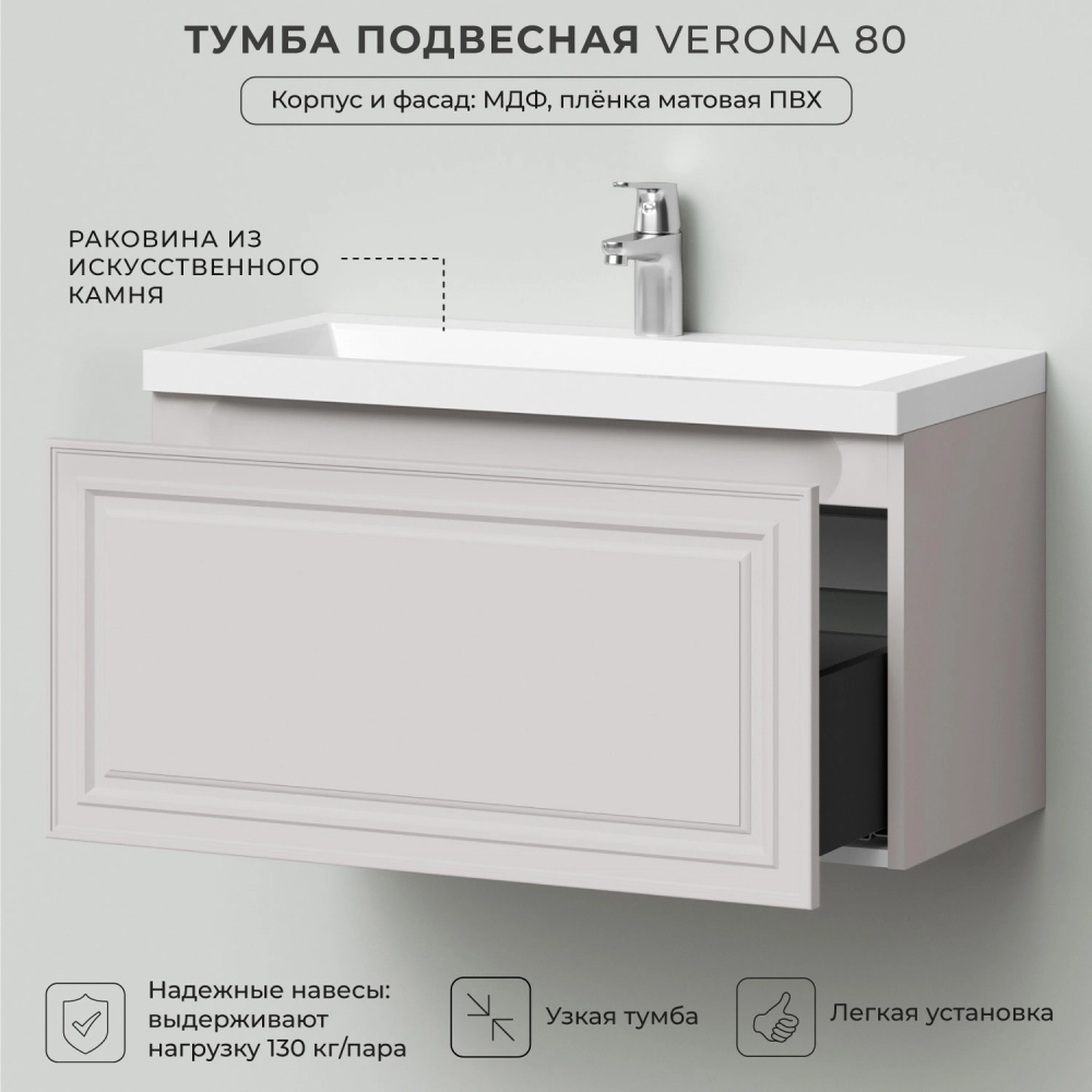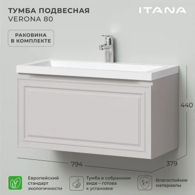 Тумба с раковиной подвесная Итана Verona 80 с выдвижным ящиком Керамик