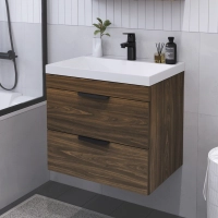 Подвесная тумба с раковиной из коллекции Альта станет настоящим украшением ванной комнаты в современном стиле. Навесной способ установки тумбы в ванную дает возможность не только визуально увеличить пространство, но и обеспечивает быстрый и удобный доступ для уборки. Размеры подвесной тумбы с раковиной 600*447*564 - идеальный выбор для ванной комнаты или туалета.Тумба с раковиной изготовлена из ламинированного ДСП, поэтому выдерживает высокие эксплуатационные нагрузки. Качественная фурнитура с доводчиками обеспечивает легкое открывание и плавное закрывание ящиков. Вырез под сифон универсальный, для любого типа. Благодаря своей конструкции тумба обеспечивает удобный доступ к раковине и позволяет скрыть коммуникации. Тумба с раковиной в ванную оснащена двумя удобными ящиками для хранения, что позволяет разместить всё необходимое под рукой. Раковина из искусственного камня– это безупречная гладкость поверхности, на которой не задерживаются загрязнения. Для точного выбора подвесной тумбы с раковиной в ванную комнату рекомендуем обратиться к схеме замеров, которая находится на фото в карточке товара, размеры изделия могут отличаться +/-1 см в связи со спецификой производства. Тумба для ванной доставляется в предварительно собранном виде, надежно упакована.