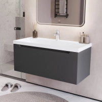 Тумба с раковиной в ванную ИТАНА Алара 100, подвесная, Графит, 1 ящик