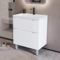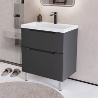 Напольная тумба с раковиной в ванную из коллекции Алара - это сочетание современной стилистики и богатого функционала. Тумба для ванны изготовлена из прочного МДФ, поэтому выдерживает высокие эксплуатационные нагрузки. Корпус и фасады тумбы для ванной покрыты пленкой ПВХ, что обеспечивает дополнительную защиту тумбы с раковиной от влаги и перепадов температуры. Качественная фурнитура с доводчиками обеспечивает легкое открывание и плавное закрывание ящиков. Вырез под сифон универсальный, для любого типа. Тумба в ванную оснащена двумя удобными ящиками для хранения, что позволяет разместить всё необходимое под рукой. Для точного выбора тумбы с раковиной в ванную комнату рекомендуем обратиться к схеме замеров, которая находится на фото в карточке товара, размеры изделия могут отличаться +/-1 см в связи со спецификой производства. Напольная тумба для ванной доставляется в предварительно собранном виде, надежно упакована.