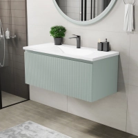 Тумба с раковиной в ванную ИТАНА Кейт 100, подвесная, Мятно-зеленый, 1 ящик