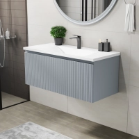 Подвесная тумба с раковиной ИТАНА Кейт 100 станет идеальным дополнением для вашей ванной комнаты, сочетая в себе стильный дизайн и функциональность. Коллекция Кейт - воплотила в себе тренд на фактурные фасады. Идеальный "рубчик" - простое и стильное дизайнерское решение для декорирования фасадов - эта мебель бесспорно станет украшением современной ванной комнаты. Элегантная подвесная конструкция позволяет максимально эффективно использовать пространство, создавая ощущение легкости и визуальной свободы в интерьере. Тумба изготовлена из высококачественных материалов, гарантируя долговечность и надежность эксплуатации. Удобные фрезерованные ручки, качественная фурнитура с доводчиками, вместительность - мы продумали все, чтобы тумба под раковину была не просто красивой, но еще и функциональной, приятной в использовании. Ее конструкция позволяет легко поддерживать порядок в ванной, ведь все мелочи будут аккуратно убраны. Раковина выполнена из искусственного камня, обладает устойчивостью к механическим повреждениям и влиянию химических средств. Стильный декор тумбы с раковиной добавляет изюминку в общий дизайн, вписываясь в современные и классические интерьеры. Удобные выдвижные ящики обеспечивают простоту доступа к содержимому тумбы. Подвесная тумба для ванной ИТАНА Кейт 100 — это также безопасность и удобство в уборке, так как свободное пространство под ней позволяет легко очистить пол. Безупречное сочетание раковины с тумбой подчеркивает общий стиль вашей ванной комнаты, делая ее уютной и функциональной. Для точного выбора тумбочки с раковиной в ванную комнату рекомендуем обратиться к схеме замеров, которая находится на фото в карточке товара, размеры изделия могут отличаться +/-1 см в связи со спецификой производства. Тумба для ванной доставляется в предварительно собранном виде, надежно упакована.