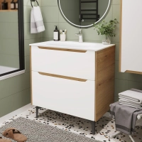 Тумба с раковиной в ванную ИТАНА Нилл 80, напольная, Белый глянец