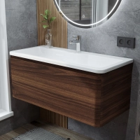 Тумба с раковиной в ванную ИТАНА Роберто 100, подвесная, Графит, 1 ящик