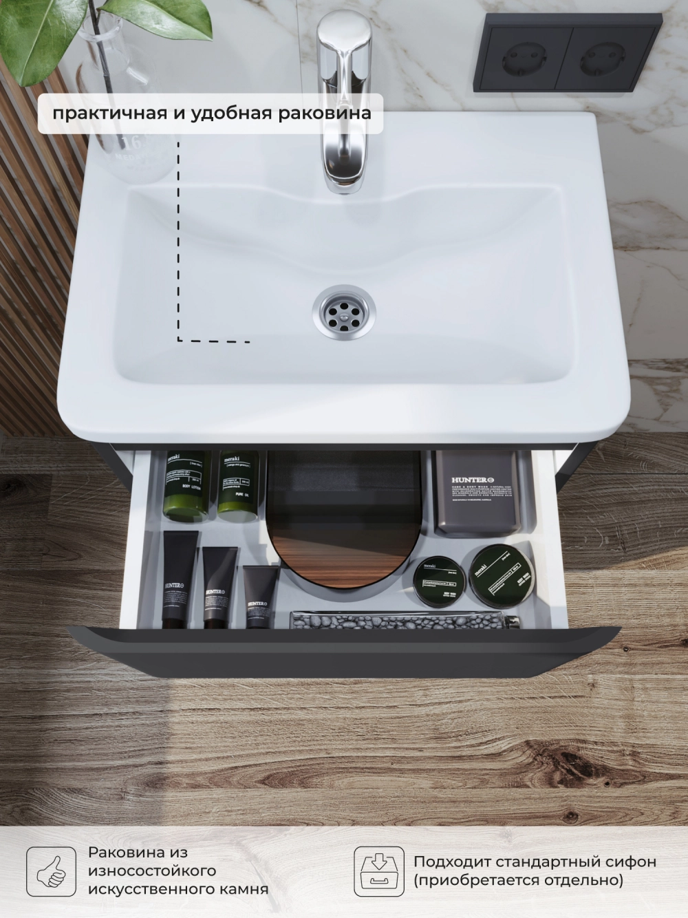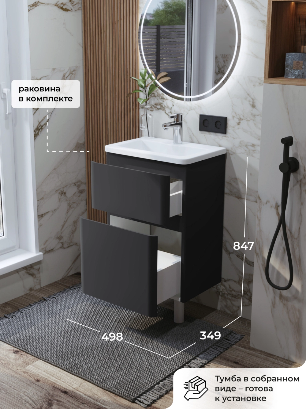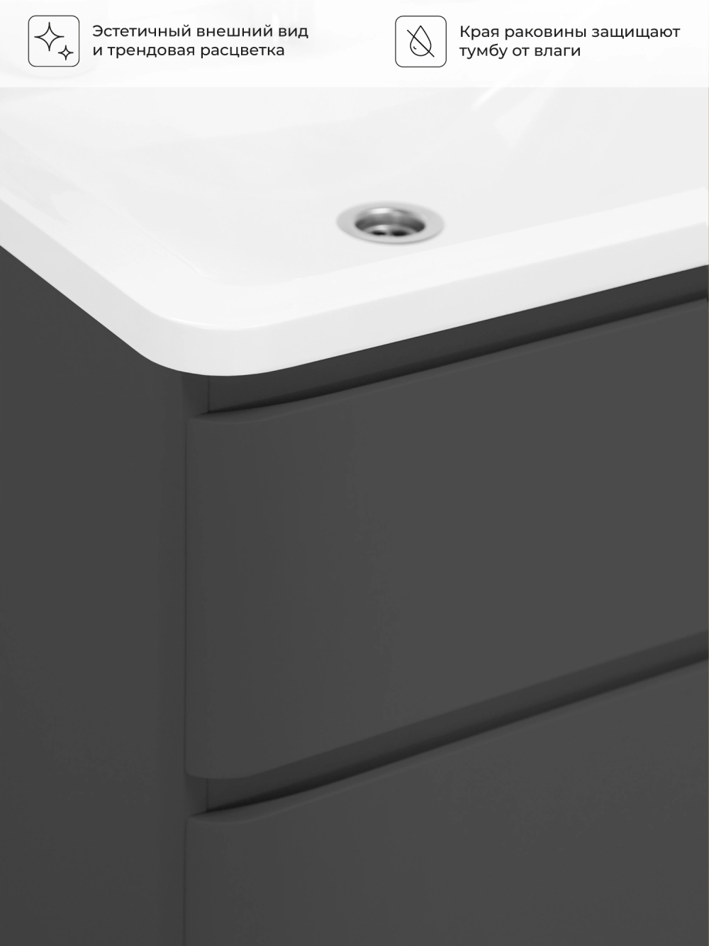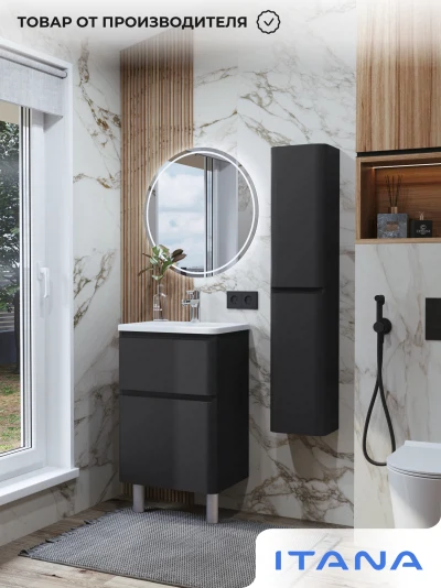 Тумба с раковиной в ванную ИТАНА Роберто 50, напольная, Графит