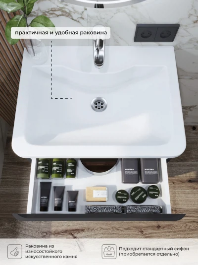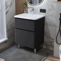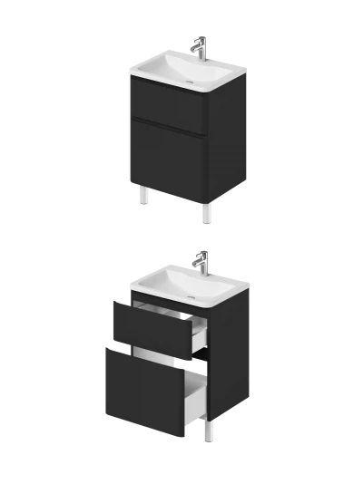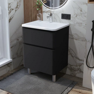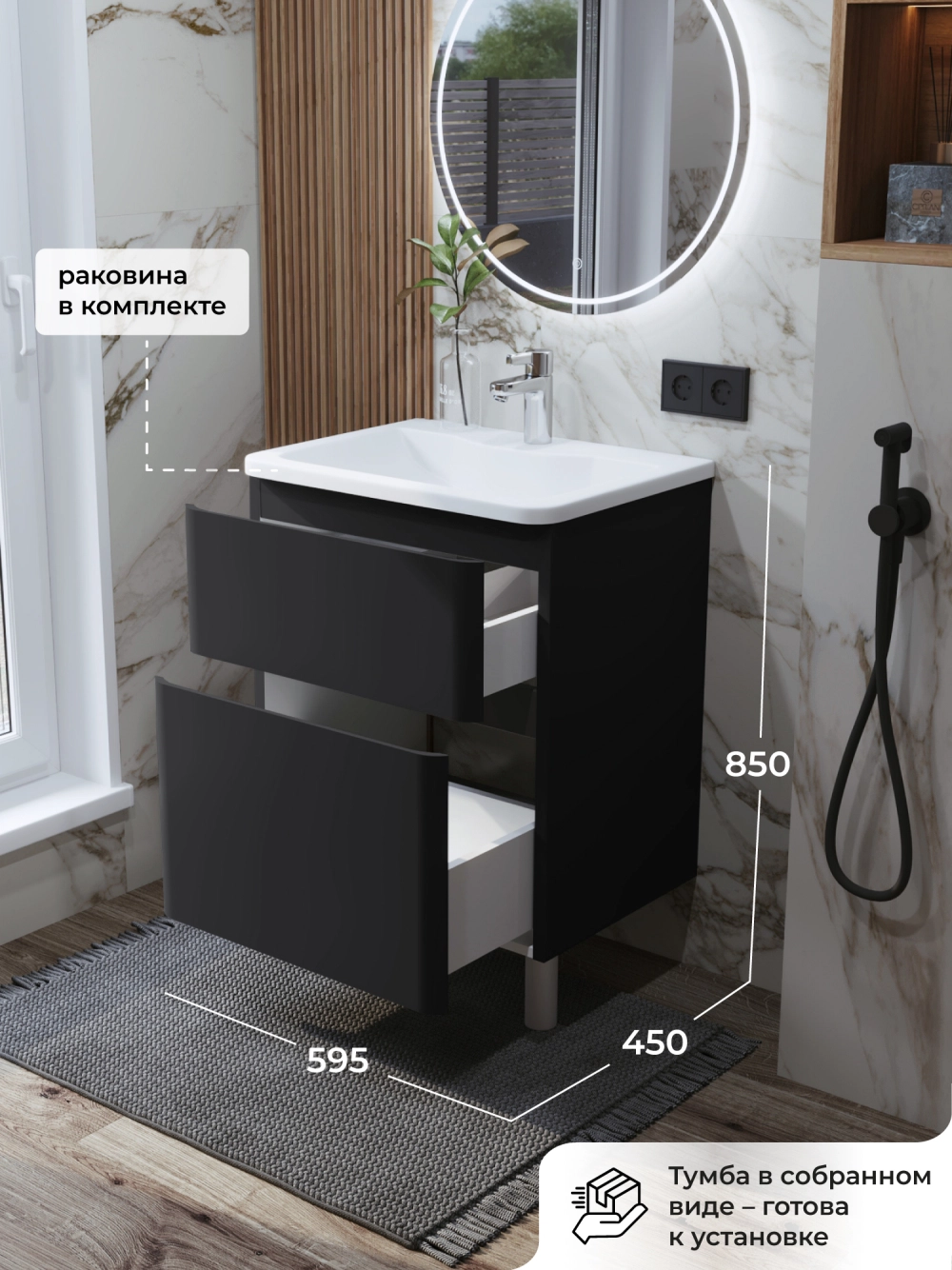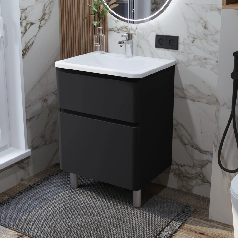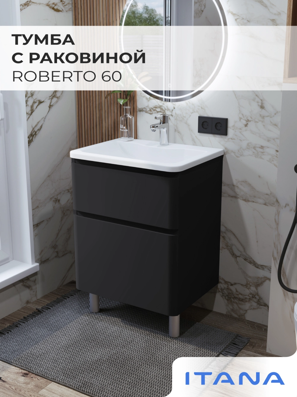 Тумба с раковиной в ванную ИТАНА Роберто 60, напольная, Черный софт