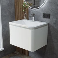 Тумба с раковиной в ванную ИТАНА Роберто 60, подвесная, Белый глянец, 1 ящик