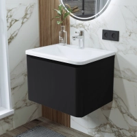 Тумба с раковиной в ванную ИТАНА Роберто 60, подвесная, Черный софт, 1 ящик