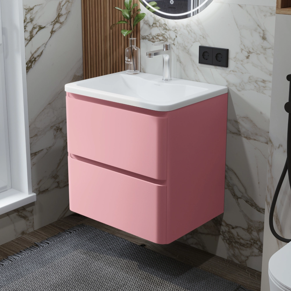 Тумба с раковиной в ванную ИТАНА Роберто 60, подвесная, Розовый