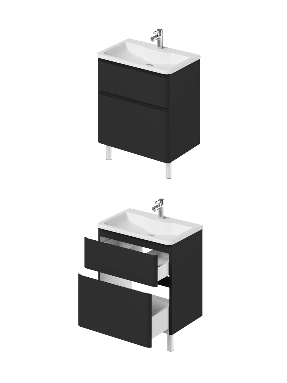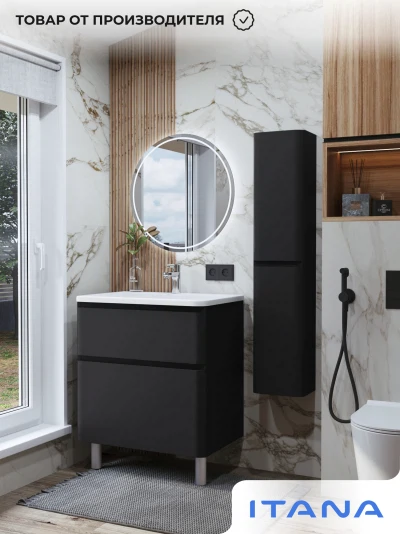 Тумба с раковиной в ванную ИТАНА Роберто 70, напольная, Черный софт