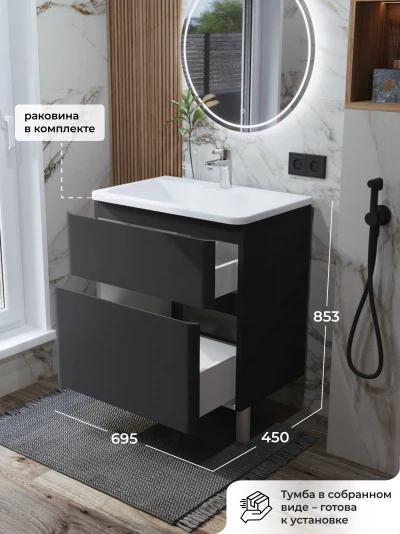 Тумба с раковиной в ванную ИТАНА Роберто 70, напольная, Графит