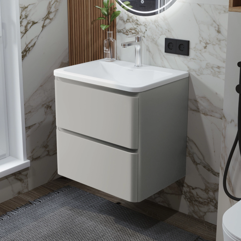 Тумба с раковиной в ванную ИТАНА Роберто 70, подвесная, Серый