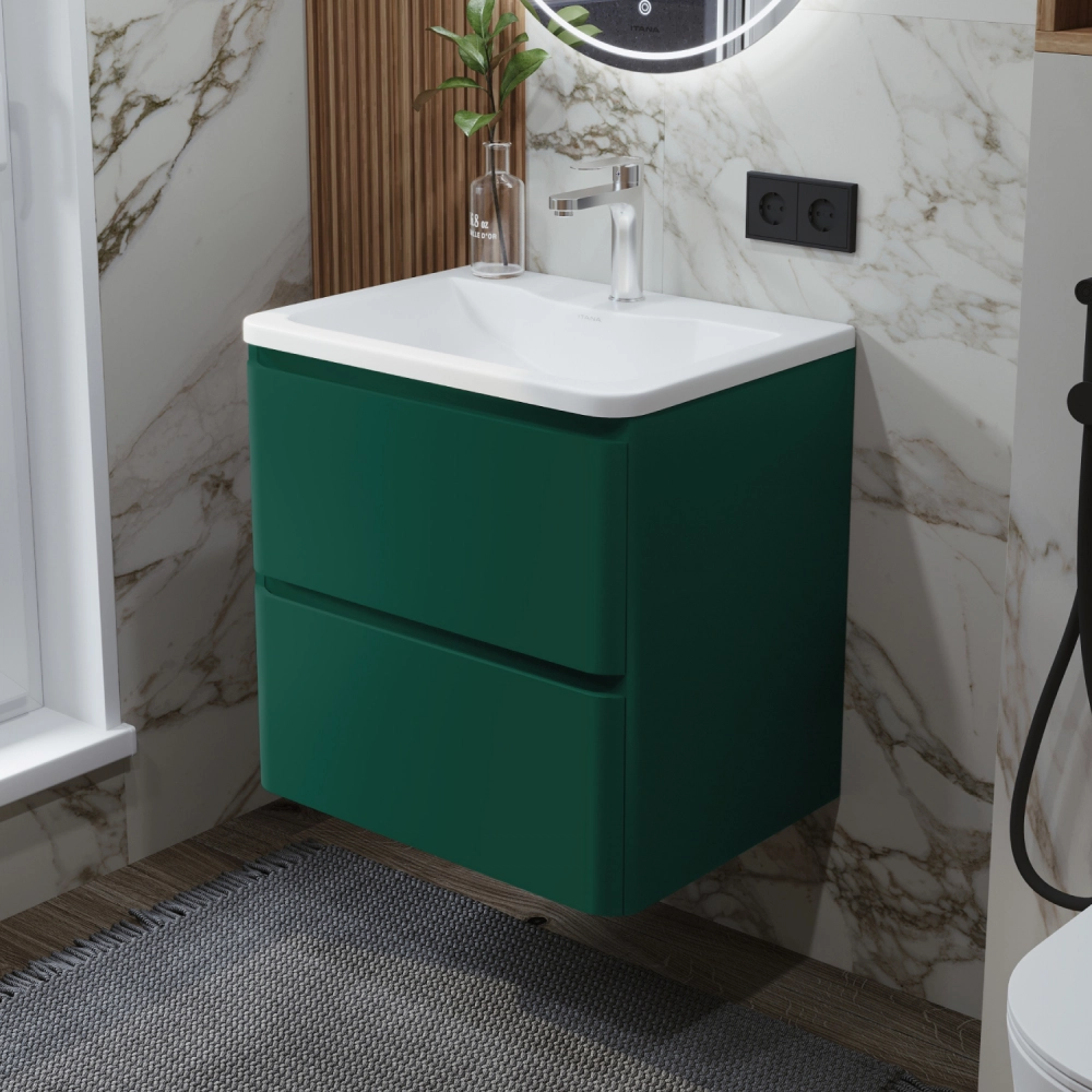 Тумба с раковиной в ванную ИТАНА Роберто 70, подвесная, Зелёный