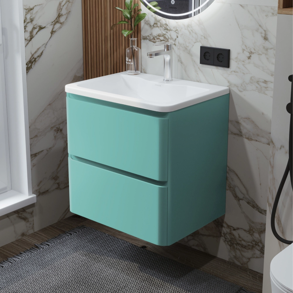 Тумба с раковиной в ванную ИТАНА Роберто 70, подвесная, Зелёный