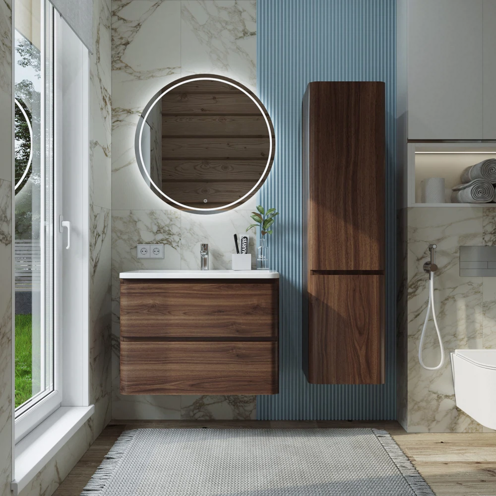 Тумба с раковиной в ванную ИТАНА Роберто 80, подвесная, Орех Пекан шоколад