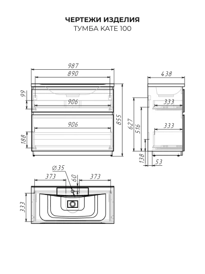 Тумба с раковиной в ванную напольная Итана Kate 100 с выдвижными ящиками Бланж
