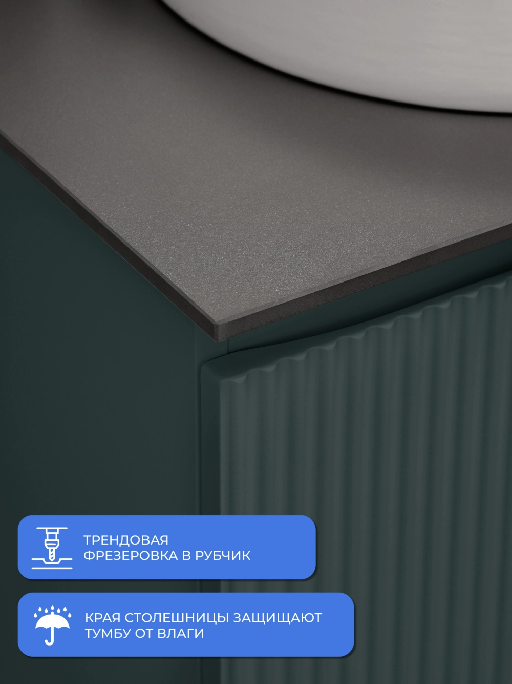 Напольная тумба со столешницей Итана Kate 80 станет идеальным дополнением для вашей ванной комнаты, сочетая в себе стильный дизайн и функциональность. Коллекция Kate - воплотила в себе тренд на фактурные фасады. Идеальный "рубчик" - простое и стильное дизайнерское решение для декорирования фасадов - эта мебель бесспорно станет украшением современной ванной комнаты. Тумба изготовлена из высококачественных материалов, гарантируя долговечность и надежность эксплуатации. Удобные фрезерованные ручки, качественная фурнитура с доводчиками, вместительность - мы продумали все, чтобы тумба под раковину была не просто красивой, но еще и функциональной, приятной в использовании. Ее конструкция позволяет легко поддерживать порядок в ванной, ведь все мелочи будут аккуратно убраны. Столешница выполнена из керамогранита, обладая устойчивостью к механическим повреждениям и влиянию химических средств. Стильный декор тумбы со столешницей добавляет изюминку в общий дизайн, вписываясь в современные и классические интерьеры. Удобные выдвижные ящики и полки обеспечивают простоту доступа к содержимому тумбы. Безупречное сочетание столешницы с тумбой подчеркивает общий стиль вашей ванной комнаты, делая ее уютной и функциональной. Для точного выбора тумбочки со столешницей в ванную комнату рекомендуем обратиться к схеме замеров, которая находится на фото в карточке товара, размеры изделия могут отличаться +/-1 см в связи со спецификой производства. Тумба для ванной доставляется в предварительно собранном виде, надежно упакована.