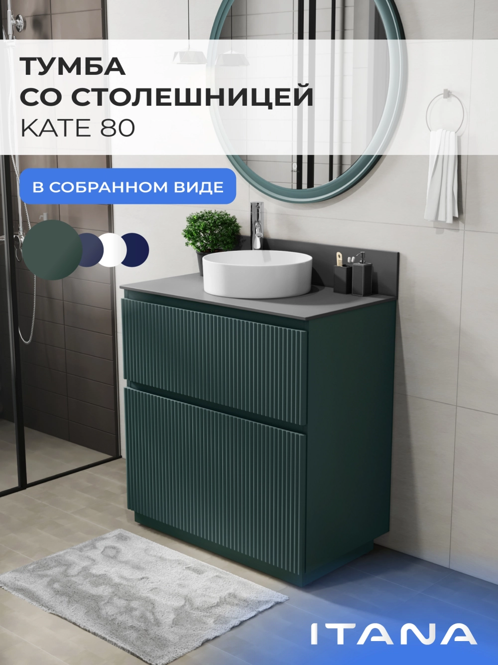 Тумба со столешницей напольная Итана Kate 80 с выдвижными ящиками Веллюто Авокадо