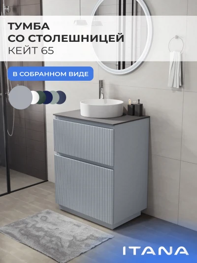 Тумба со столешницей напольная ИТАНА Кейт 65 с выдвижными ящиками Светло-серый