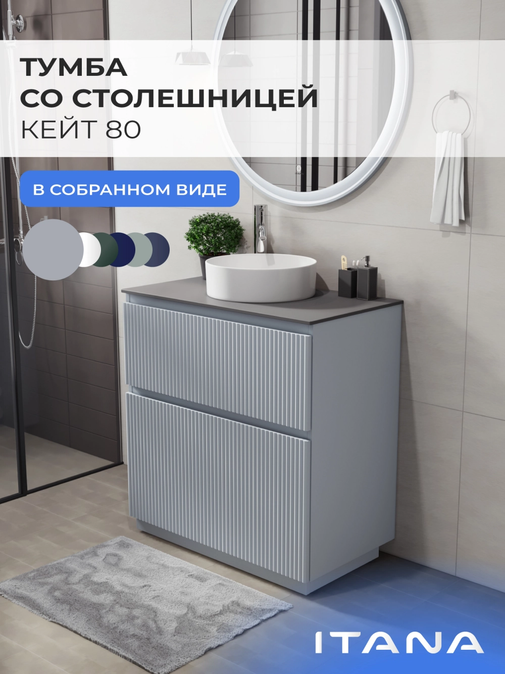Тумба со столешницей напольная ИТАНА Кейт 80 с выдвижными ящиками Светло-серый