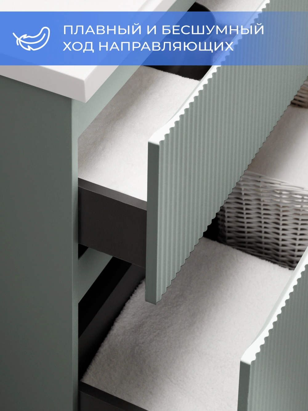 Тумба со столешницей напольная ИТАНА Кейт 80 с выдвижными ящиками Светло-зеленый