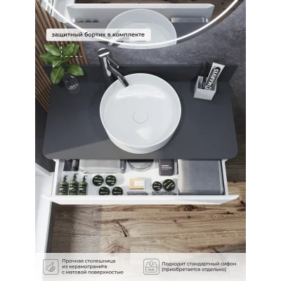 Тумба со столешницей напольная Итана Roberto 100 с выдвижными ящиками Белый Глянец