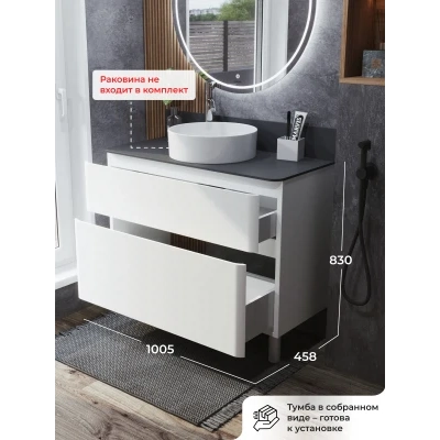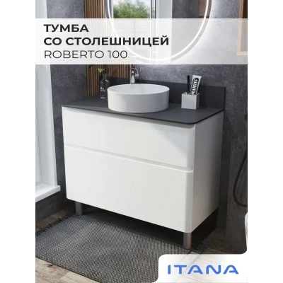 Тумба со столешницей напольная Итана Roberto 100 с выдвижными ящиками Эмаль Белый Глянец