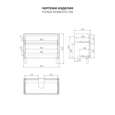 КаталогТумбы со столешницейТумба со столешницей напольная Итана Roberto 100 с выдвижными ящиками Графит