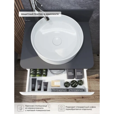 КаталогТумбы со столешницейТумба со столешницей напольная Итана Roberto 60 с выдвижными ящиками Белый Глянец