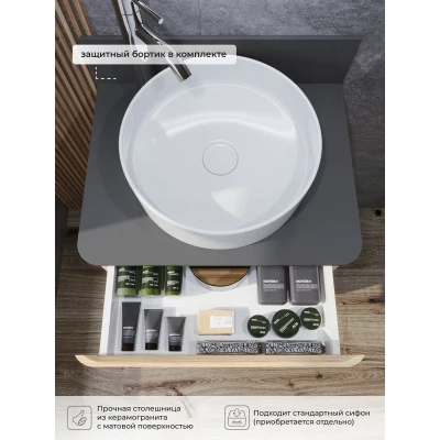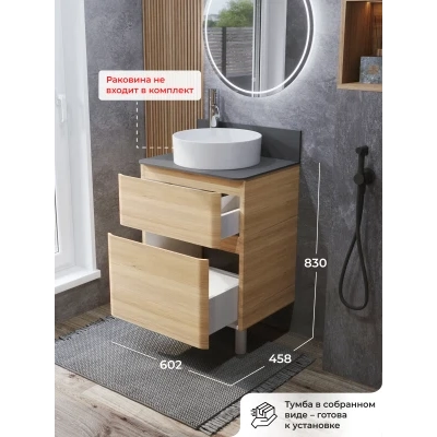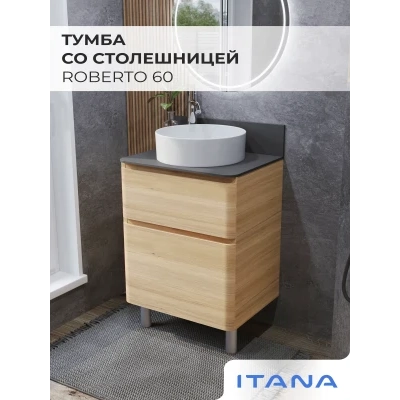КаталогТумбы со столешницейТумба со столешницей напольная Итана Roberto 60 с выдвижными ящиками Дуб Мавелла Голд