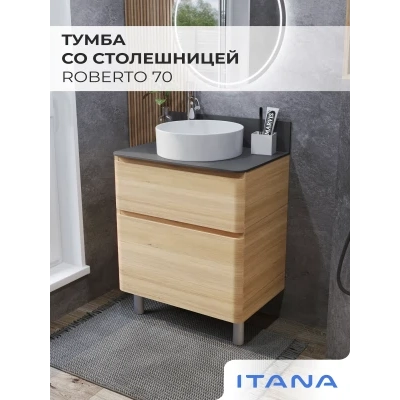 КаталогТумбы со столешницейТумба со столешницей напольная Итана Roberto 70 с выдвижными ящиками Дуб Мавелла Голд