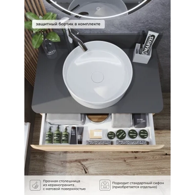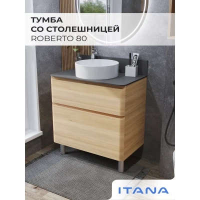 КаталогТумбы со столешницейТумба со столешницей напольная Итана Roberto 80 с выдвижными ящиками Дуб Мавелла Голд
