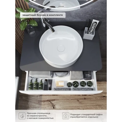 КаталогТумбы со столешницейТумба со столешницей напольная Итана Roberto 80 с выдвижными ящиками Эмаль Белый Глянец