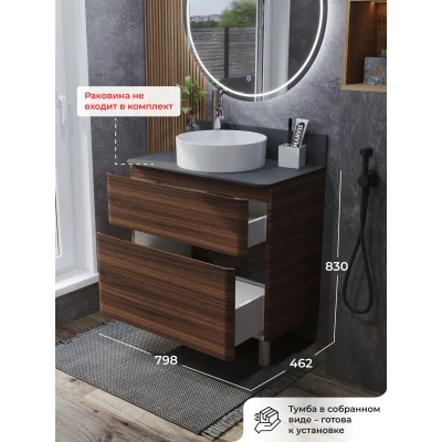 Тумба со столешницей напольная Итана Roberto 80 с выдвижными ящиками Орех Пекан Шоколад Стронг