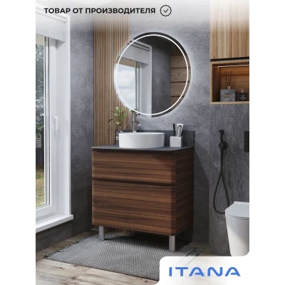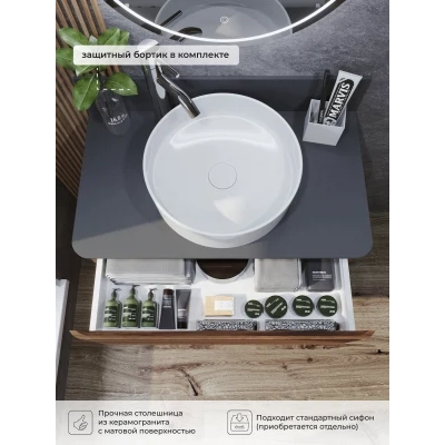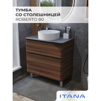 КаталогТумбы со столешницейТумба со столешницей напольная Итана Roberto 80 с выдвижными ящиками Орех Пекан Шоколад Стронг